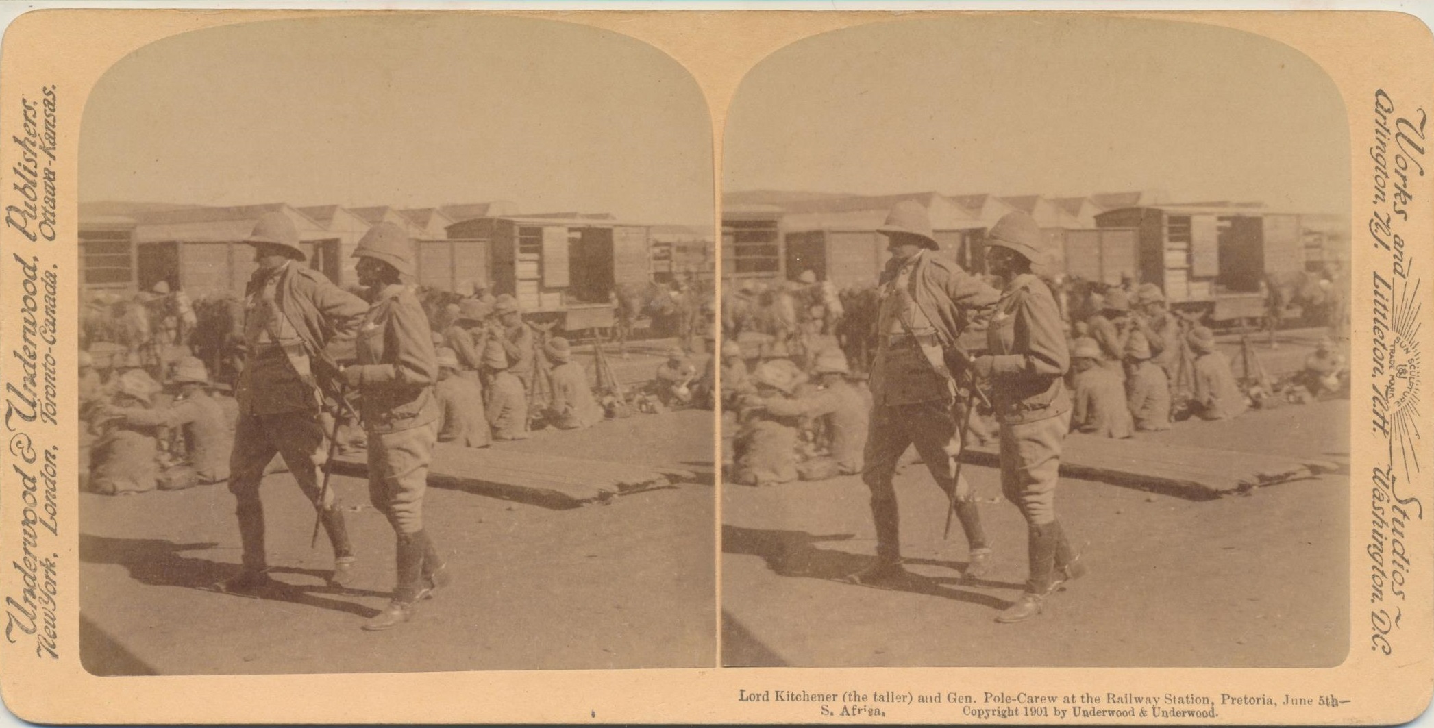 Unattributed, “Lord Kitchener (the taller) and General Pole-Carew, at the Railway Station,Pretoria (June 5th)”, Cory Library and Historical Archives, accessed 28 December 2025, https://digitalarchives.ru.ac.za/s/cory/item/12751