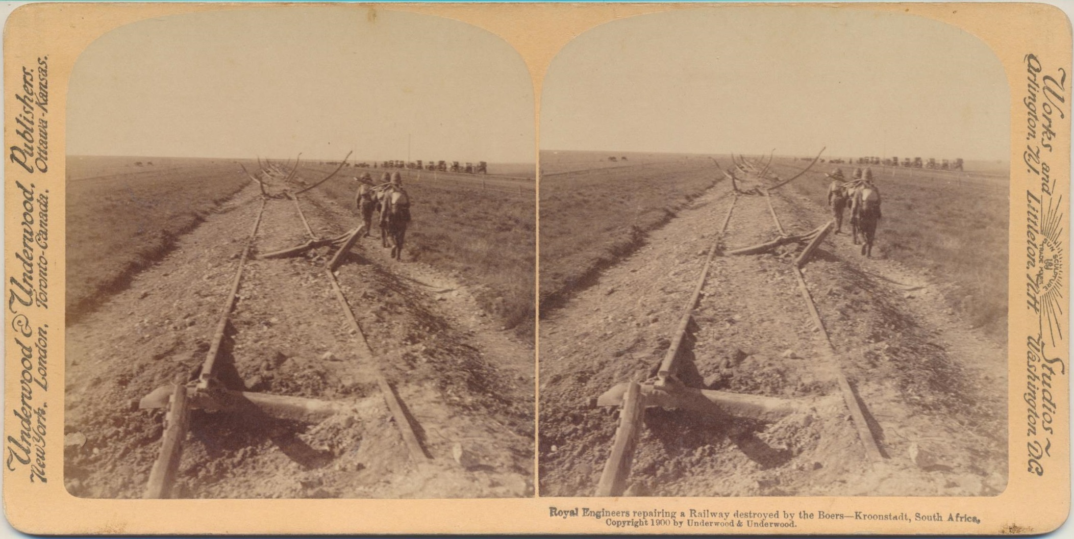 Unattributed, “Royal engineers repairing a railway - destroyed by the Boers, Kroonstadt”, Cory Library and Historical Archives, accessed 28 December 2025, https://digitalarchives.ru.ac.za/s/cory/item/12785