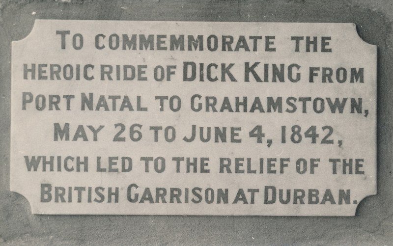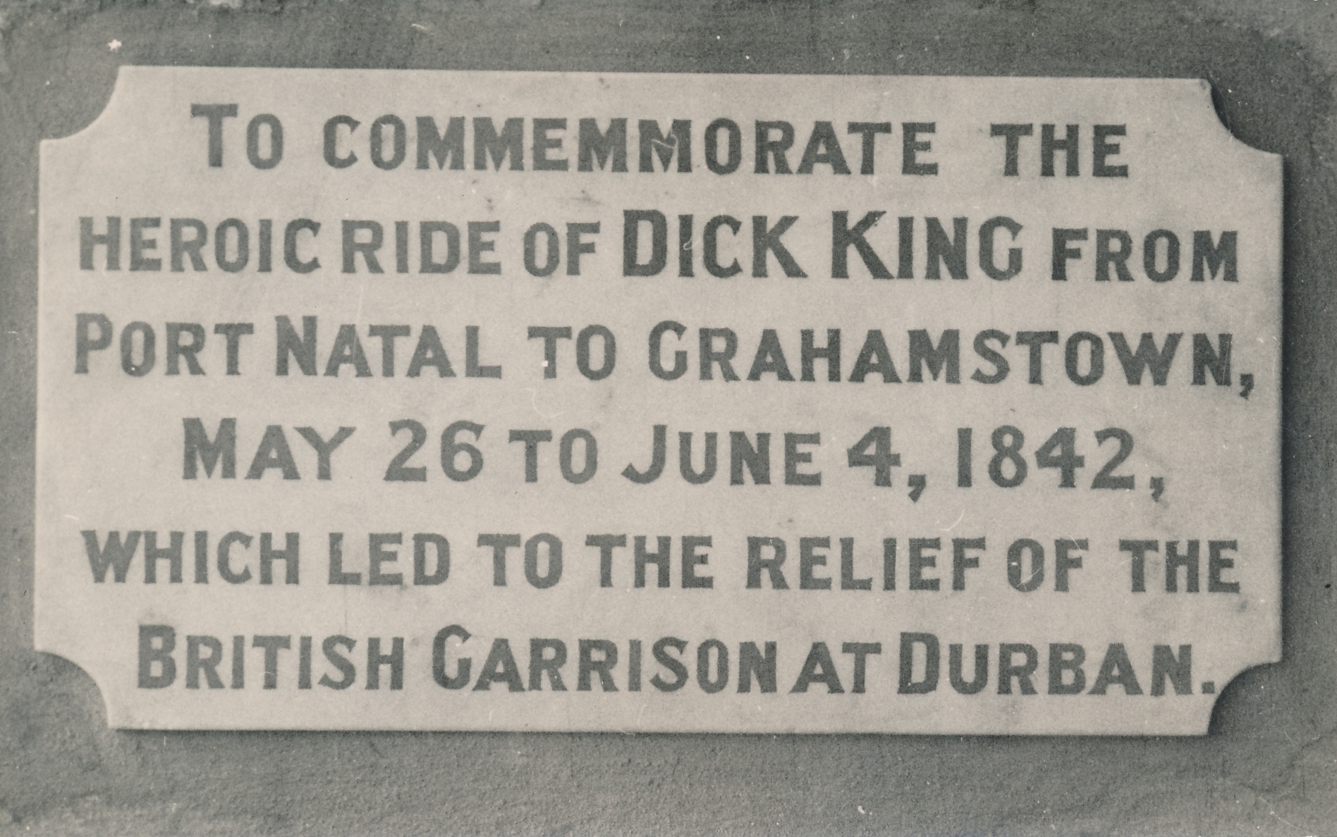“Plaque commemorating Dick King’s ride in 1842”, Cory Library and Historical Archives, accessed 29 December 2025, https://digitalarchives.ru.ac.za/s/cory/item/13020