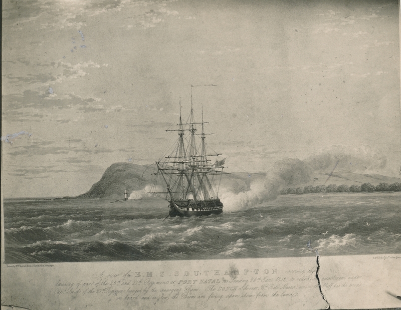 “HMS Southampton, Port Natal, 1842”, Cory Library and Historical Archives, accessed 29 December 2025, https://digitalarchives.ru.ac.za/s/cory/item/13032