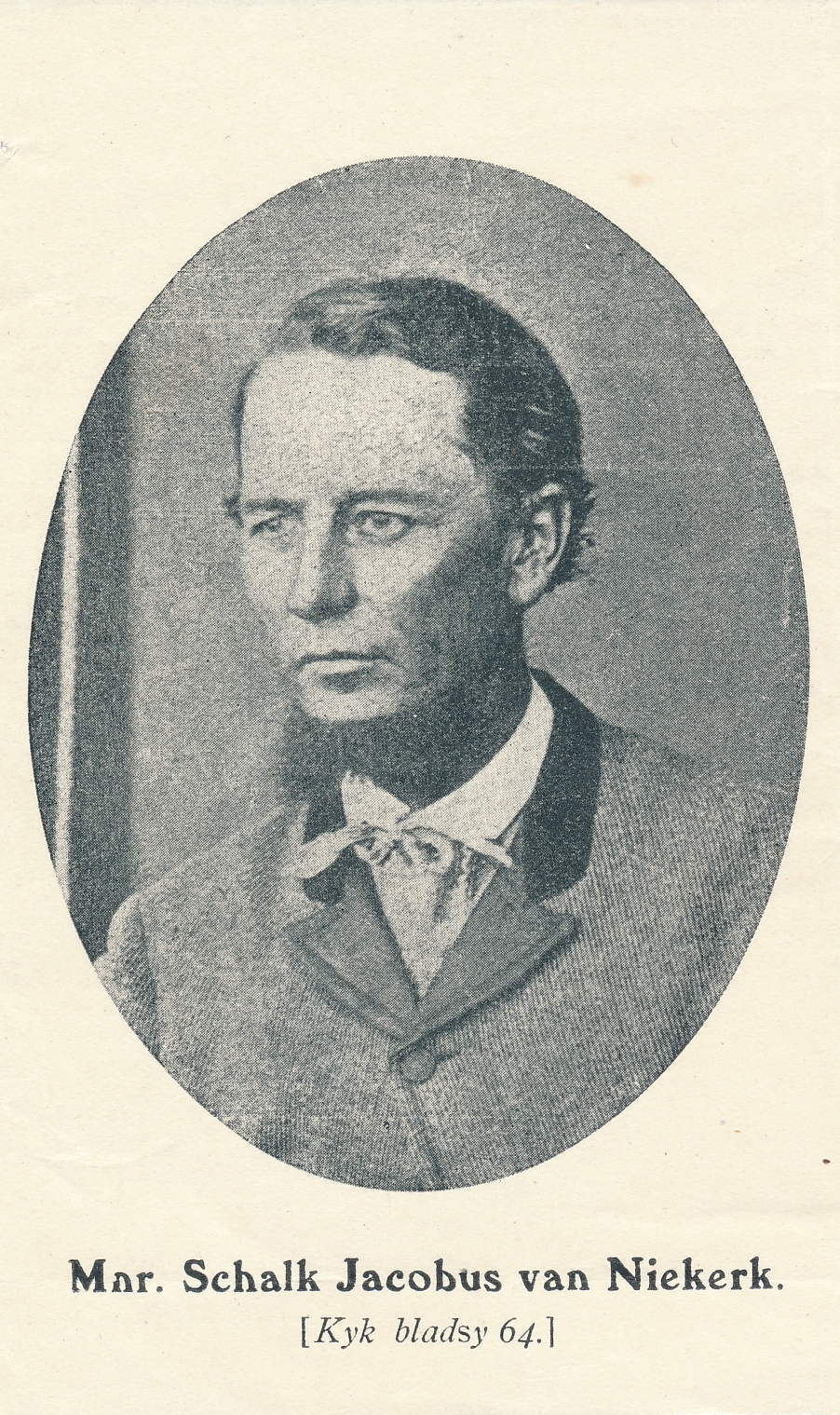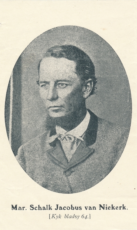 - Portrait of Schalk Jacobus van Niekerk. Unverified sources indicate that Mr van Niekerk was from Hopetown, and discovered a diamnond in 1866.