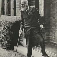 - The last action photograph of Bernard Shaw, aged 94. Inscription on the back reads in part 'Allan Chappelow's new book derives its title from this photograph, which appears on the jacket and as frontispiece, and which, in addition to the aggressive physical stance, is symbolic of Shaw's role as iconoclast, - the "chucker-out" of the dead wood of society.'