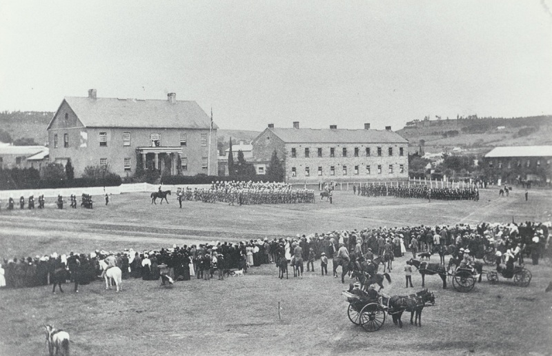 Booth, E G A, “View of a military parade on the Drostdy grounds, Grahamstown, ca. 1895”, Cory Library and Historical Archives, accessed 29 December 2025, https://digitalarchives.ru.ac.za/s/cory/item/13246