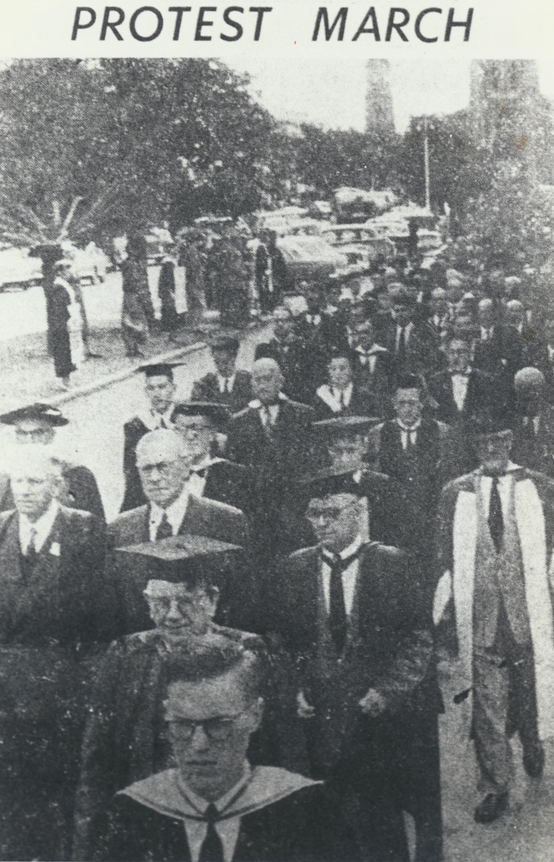 - Protest march of Rhodes University staff and students on 4 April 1959 against the passing of the Separate Universities Education Act.