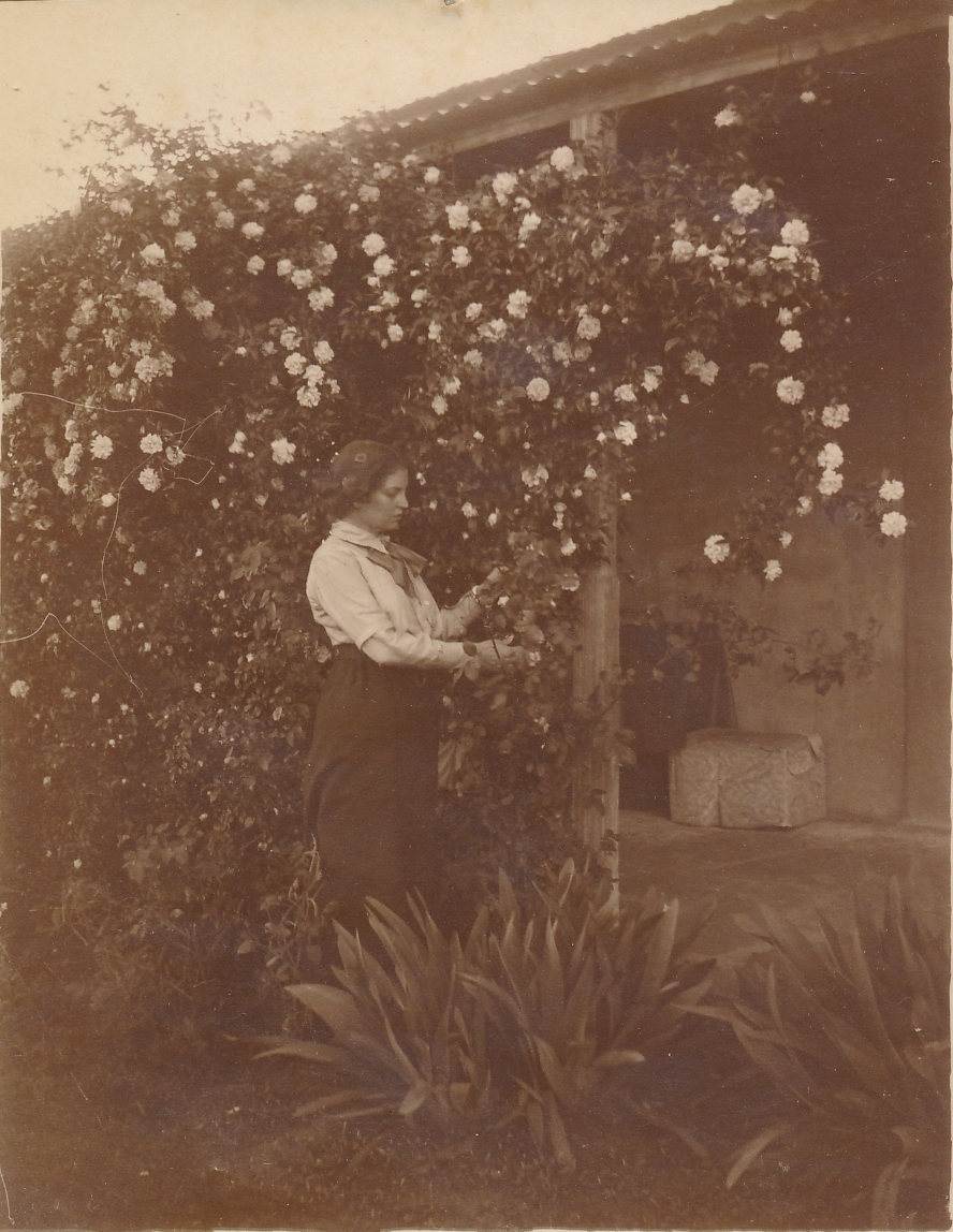 - Photograph of a woman in the garden, "possibly Helen"