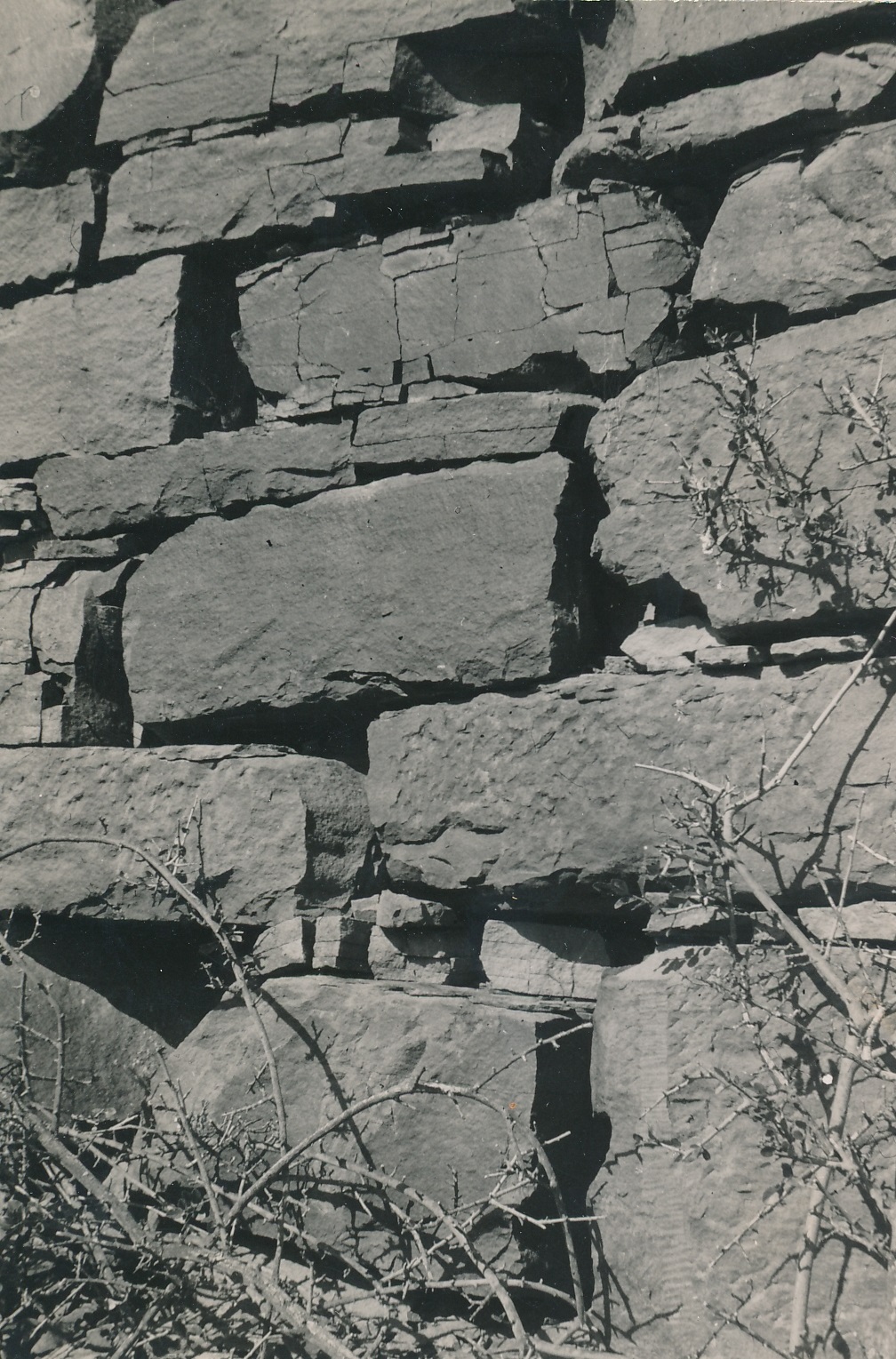 - View of a corner of the ruins of Fort Willshire and detail of the stone work showing method of construction. Una Long : photographer