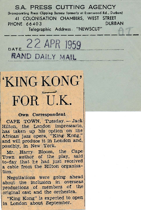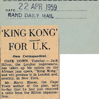 Rand Daily Mail and S.A. Press Cutting Agency, “King Kong for U.K.”, Cory Library and Historical Archives, accessed 28 December 2025, https://digitalarchives.ru.ac.za/s/cory/item/13629