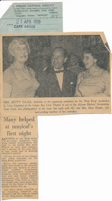 Cape Argus and S.A. Press Cutting Agency, “Many helped at musical's first night”, Cory Library and Historical Archives, accessed 28 December 2025, https://digitalarchives.ru.ac.za/s/cory/item/13641