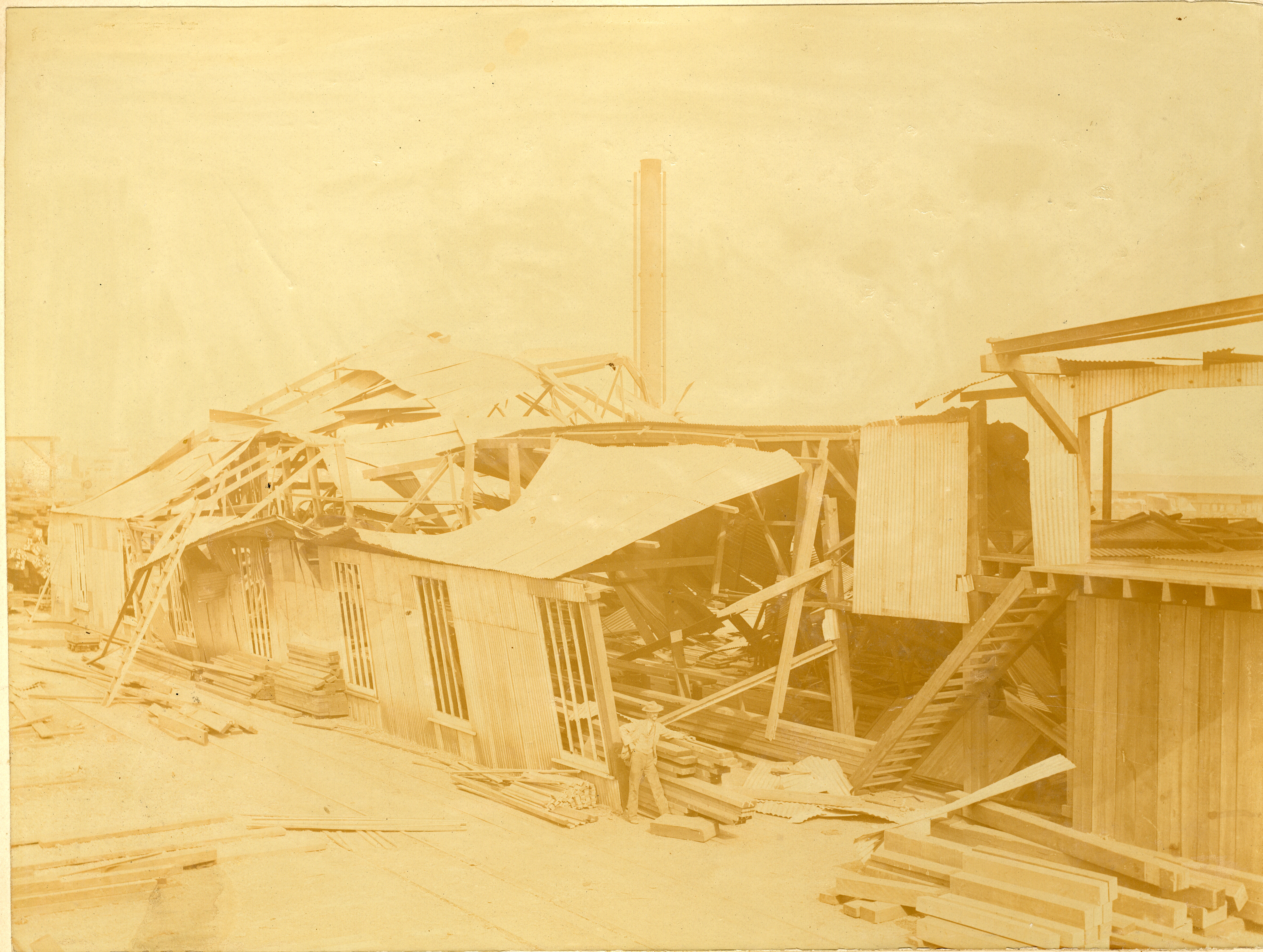 - Photograph showing a man standing next to a building destroyed by the Braamfontein dynamite explosion which occurred on 19 February 1896.
