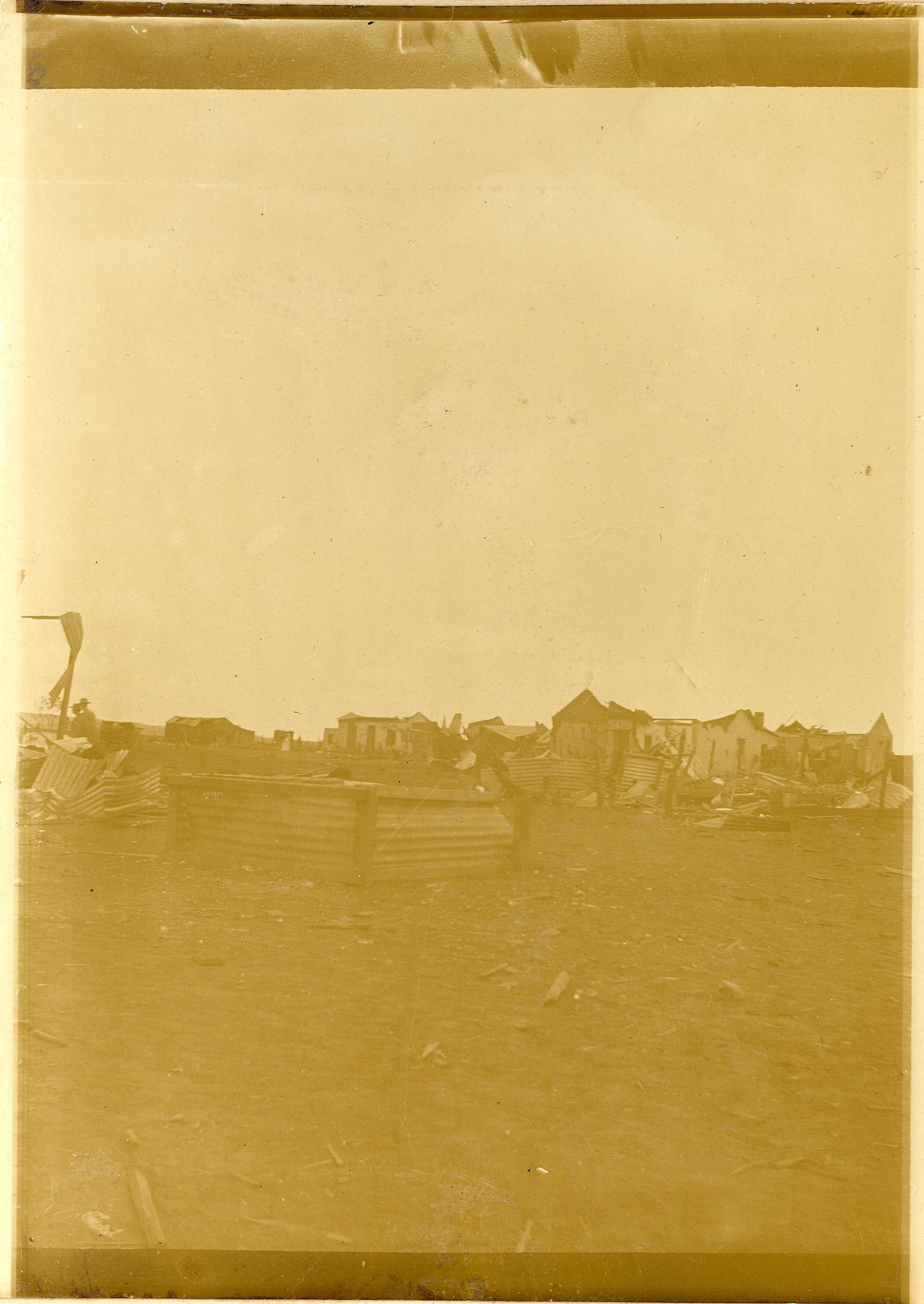 - Photograph showing several houses which were destroyed by the Braamfontein dynamite explosion which occurred on 19 February 1896.