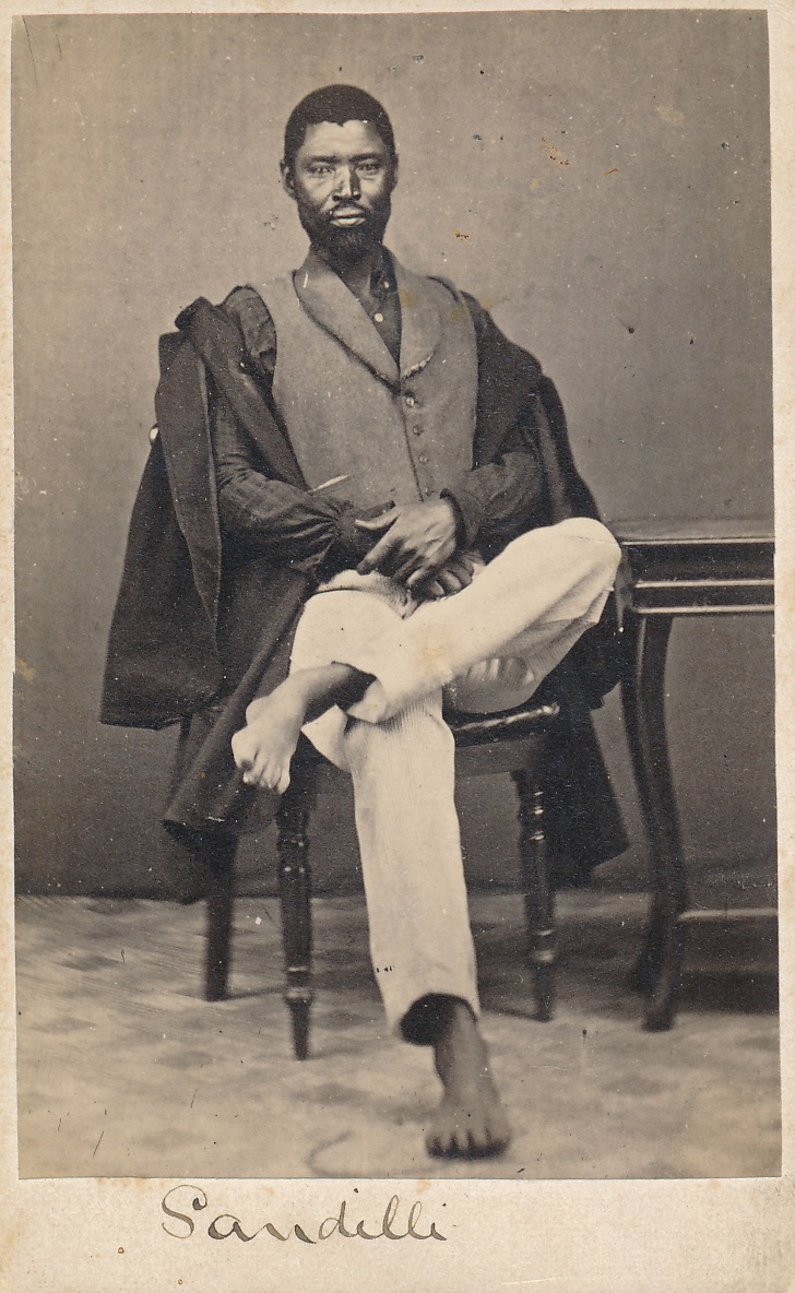 - Sandile, attired formally in long white pants, dark coat, grey waistcoat and dark button shirt. Original title "Full-length portrait of Sandile, Xhosa Chief, in western dress".,Gold Fields of South Africa Ltd. (donor)