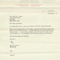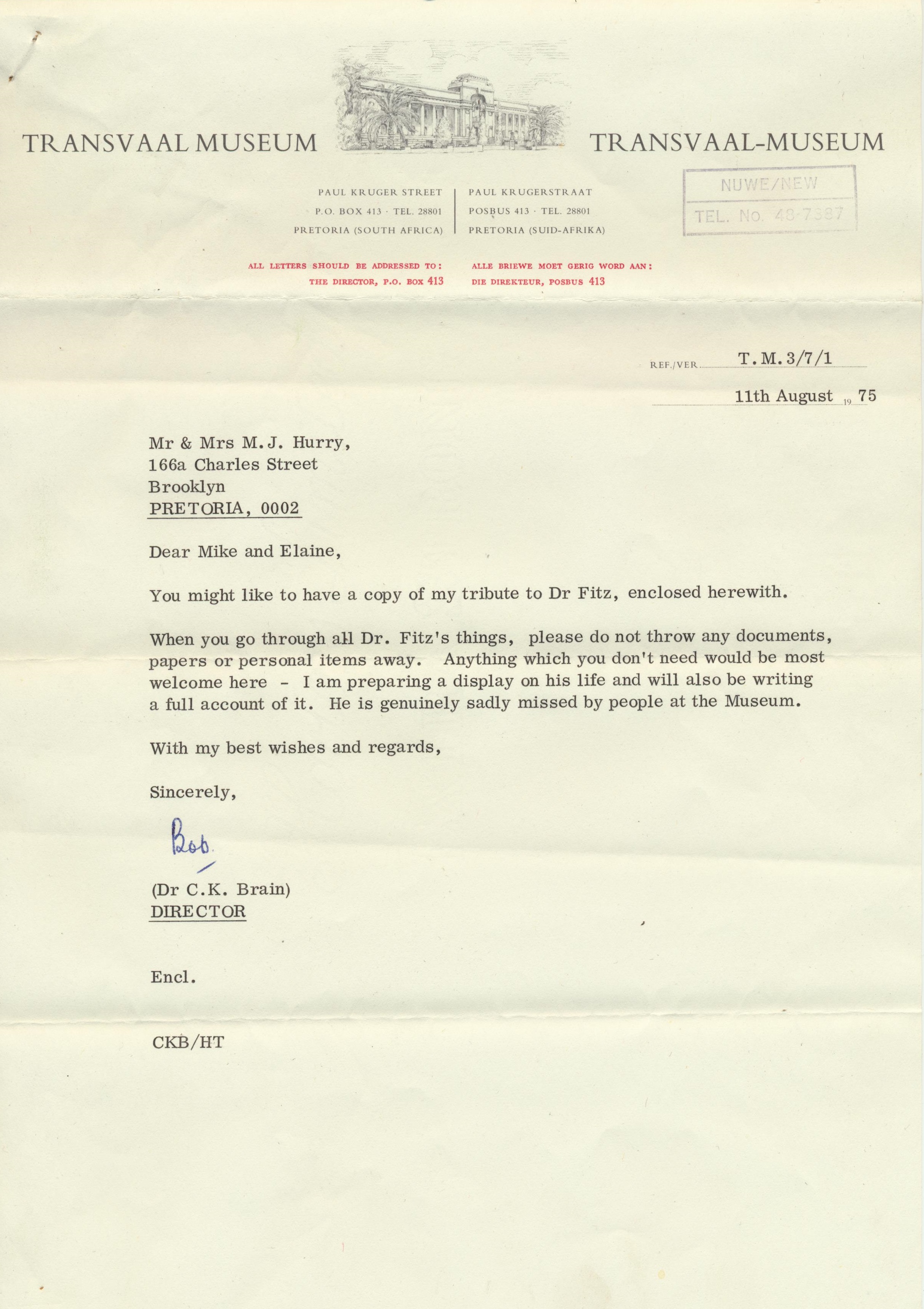 Unattributed, “C.K. Brain tribute to V.F. Fitzsimons”, Cory Library and Historical Archives, accessed 28 December 2025, https://digitalarchives.ru.ac.za/s/cory/item/14050