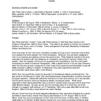 - This is the transcription of two diaries written by Ellen Case, wife of Rev. Philip Henry Case, describing their life in the service of the Anglican church from 1888-1894, while they were based at St Cuthbert's Mission near Tsolo, (1888-1889) and a year at Peddie in 1892. A volume containing copies of her letters home are also transcribed, as well as the account of a family holiday at Hluleka, Transkei coast, in 1902. The note books are in a fragile condition; they have been transcribed by her grandson, John James Case, who deposited the collection in Cory Library in December 2003, and the transcription in 2014.,Donated by John J. Case in 2014.