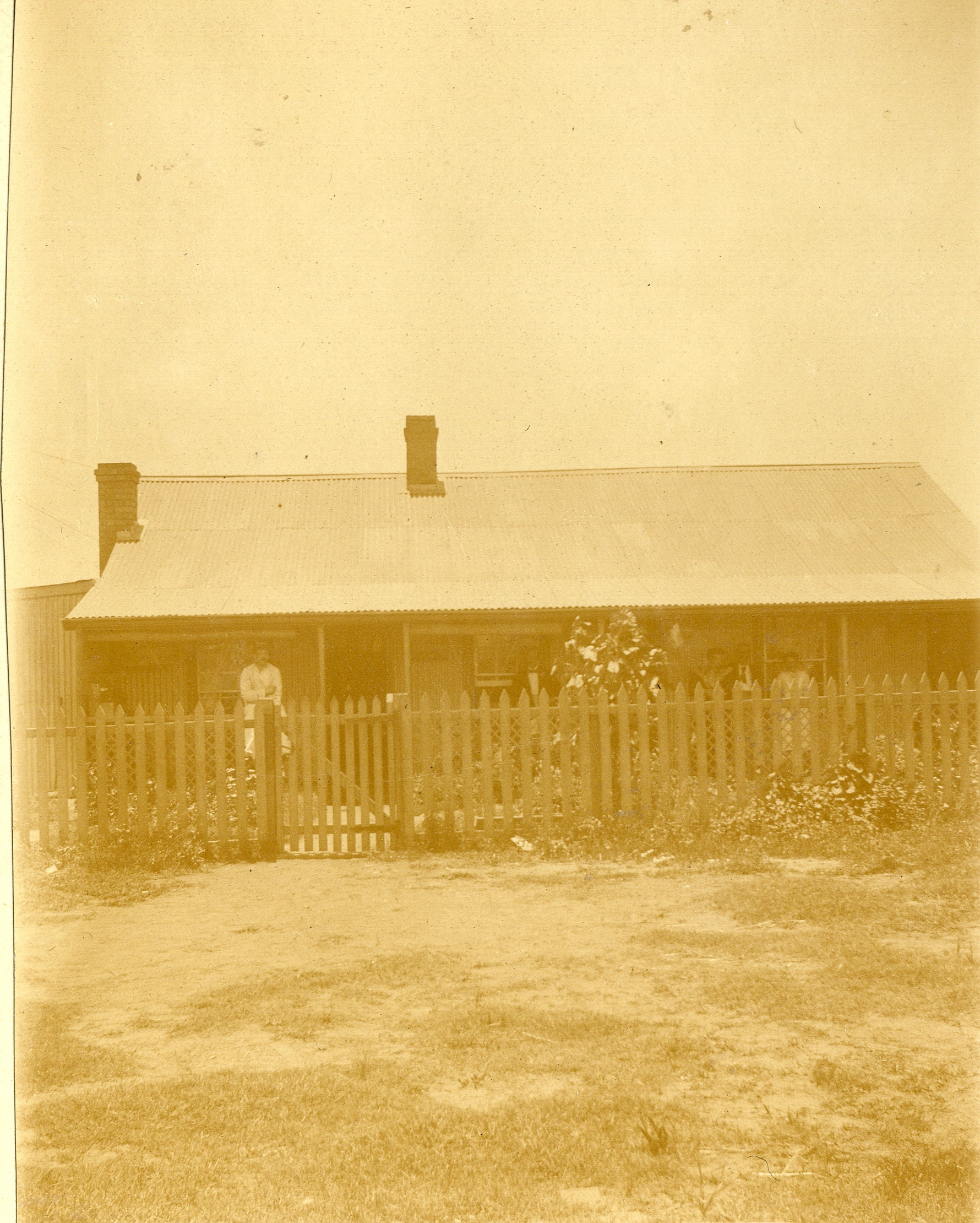 - Photograph of the front view of a house (presumably in a mining town) showing several people on the veranda.,Gold Fields of South Africa Ltd. (Donor)