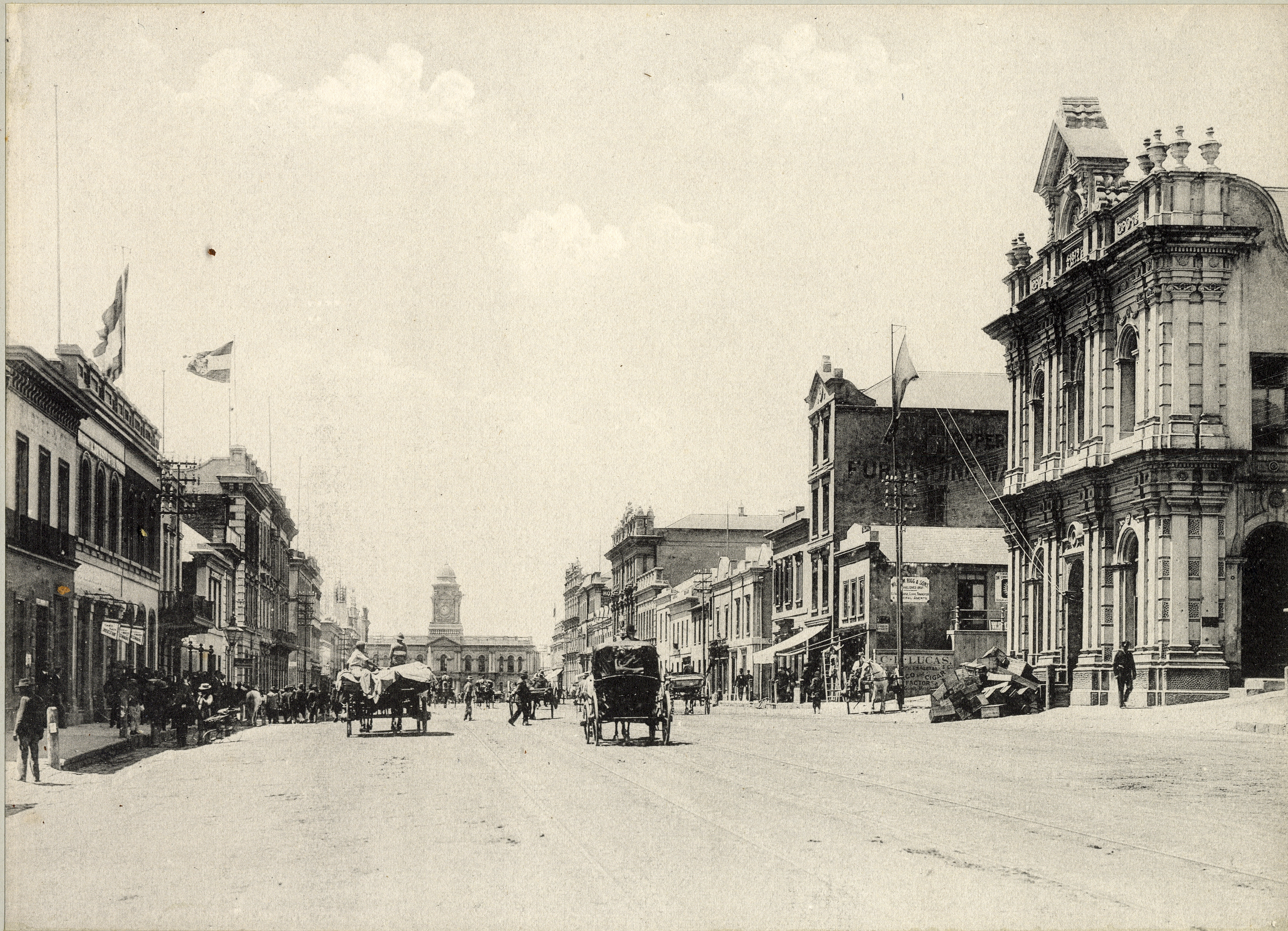 Middlebrook, J E, “Main Street - Town Hall in the distance - Port Elizabeth”, Cory Library and Historical Archives, accessed 29 December 2025, https://digitalarchives.ru.ac.za/s/cory/item/14561