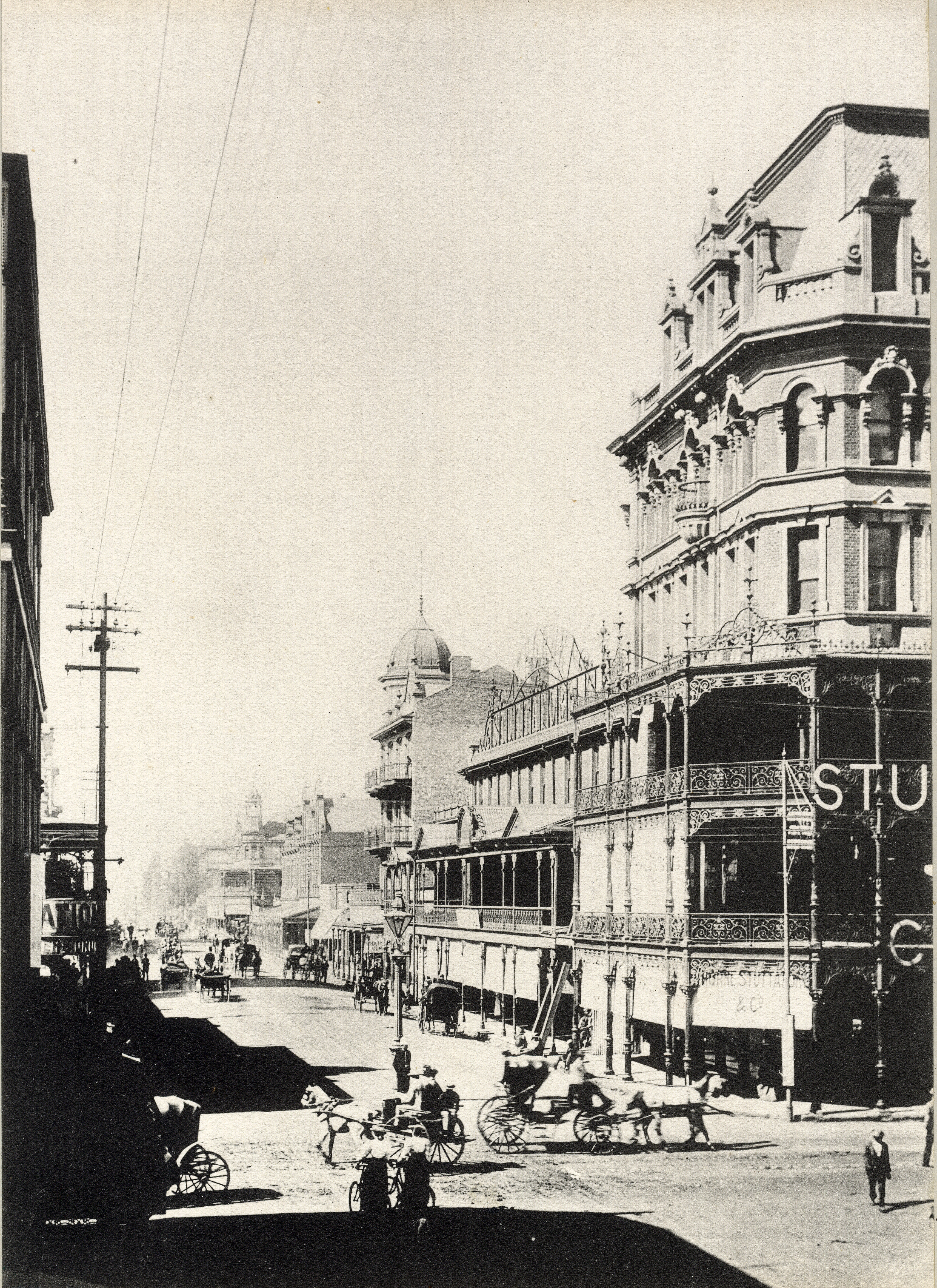 - Pritchard Street (up to date), shewing Thorne Stuttaford's new six-storied Stockhouse, the ground on which this building is erected, 50ft by 50ft., cost £35,000.
