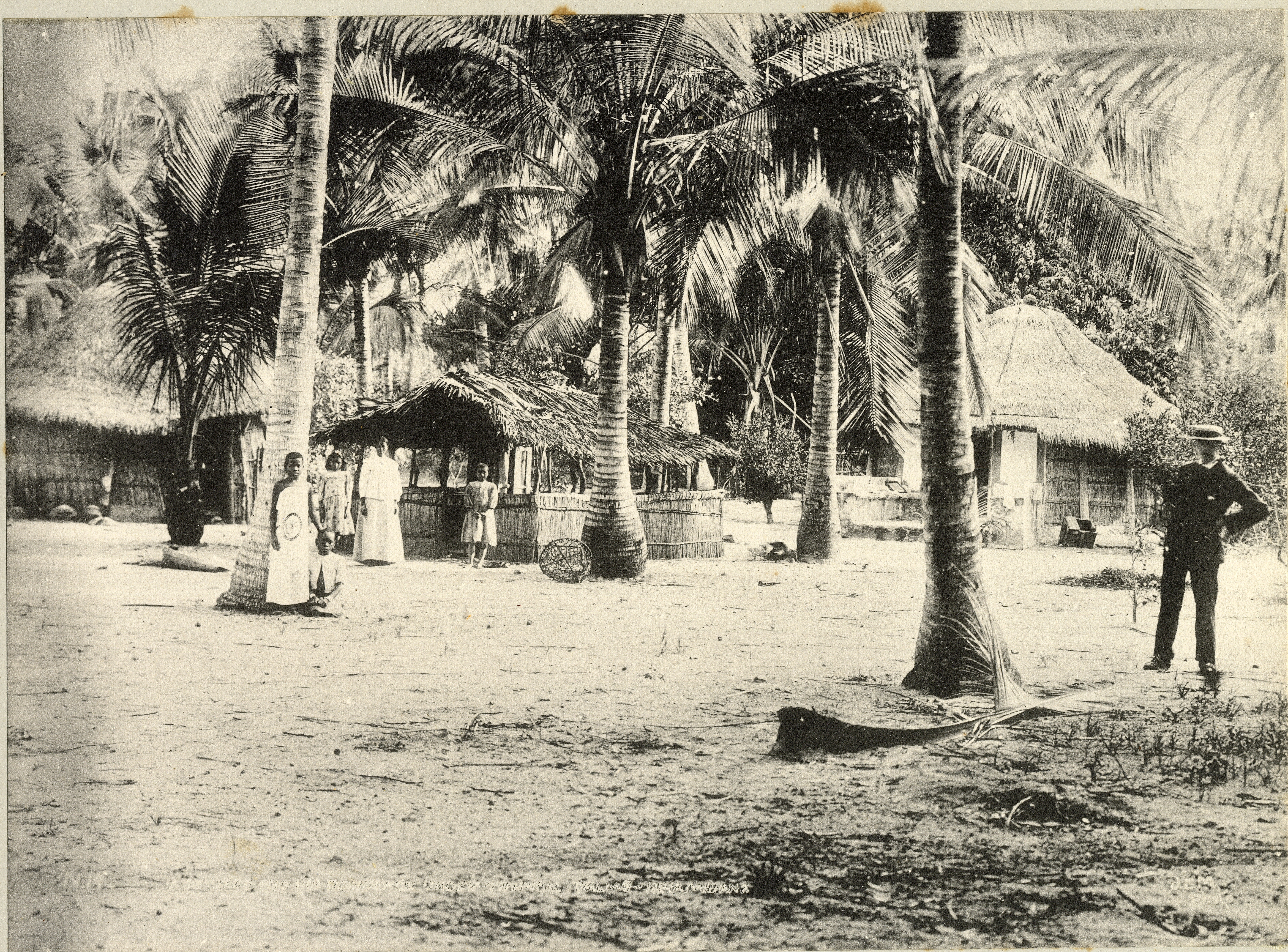- A "Settler" and his typical residence under Tropical Palms, Inhambane, Mozambique.