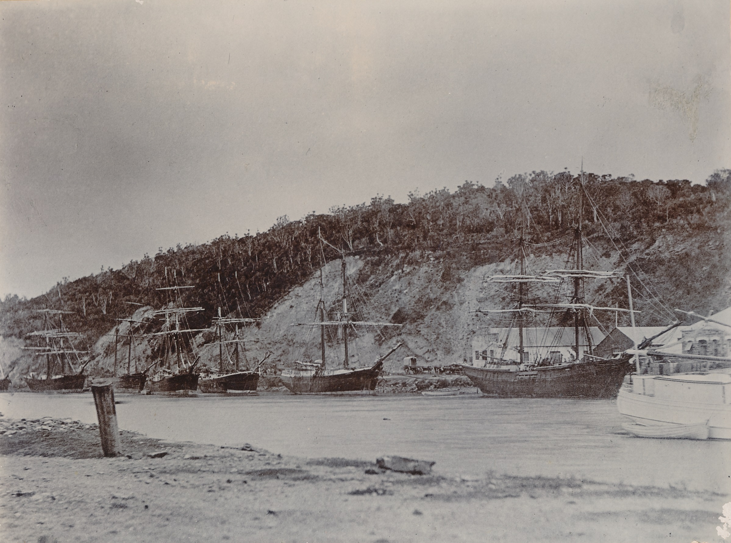 Hepburn & Jeanes, “View of the Kowie River showing ships at anchor, an ox-wagon and riverside buildings”, Cory Library and Historical Archives, accessed 28 December 2025, https://digitalarchives.ru.ac.za/s/cory/item/14659