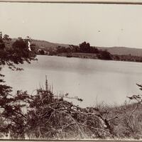 - Photograph of a water reservoir with (presumably) the Hutton home in the background.