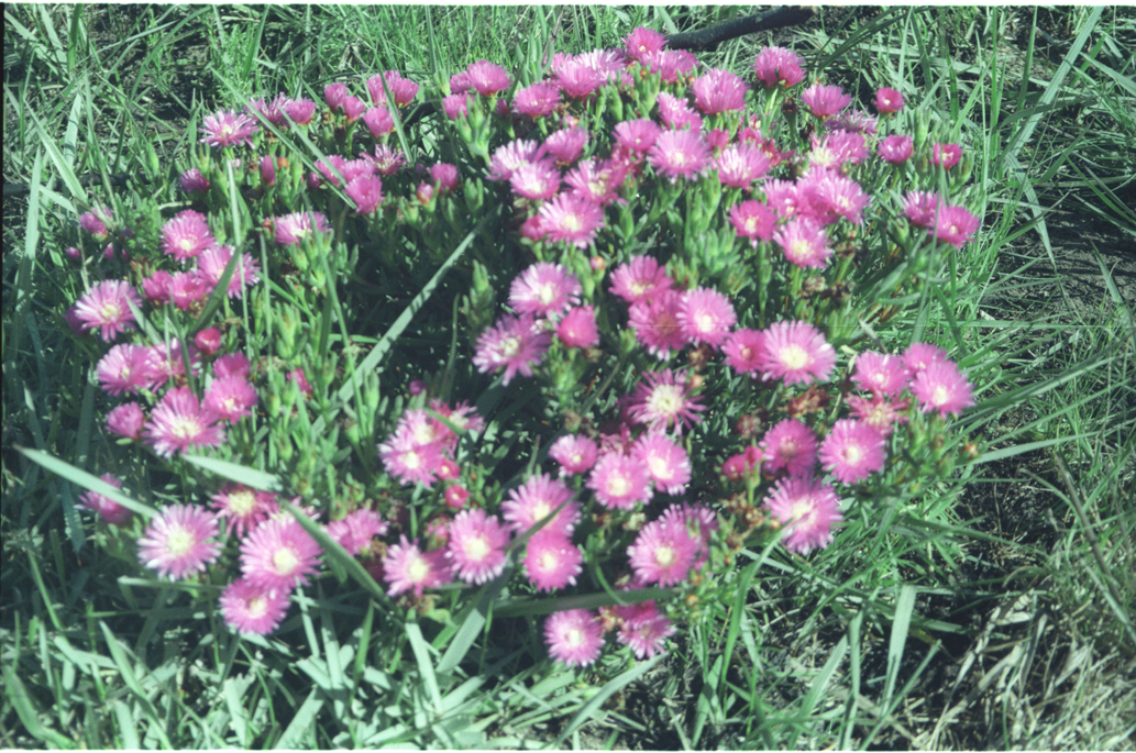 - Probably Lampranthus sp. of Mesem in a single cluster on freshly burnt ground. Soon to disappear under urban sprawl.