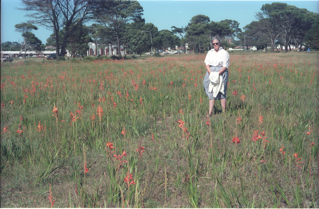 - Field of Watsonia pillansii, portion of a much larger field behind camera. Soon to disappear under urban sprawl.