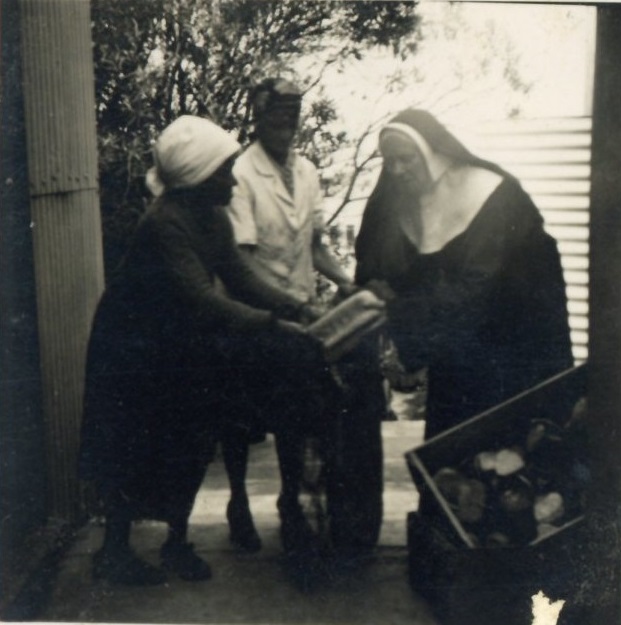 - Photograph of a nun and two other women with supplies at the Kensington Sunday School in Port Elizabeth, South Africa.