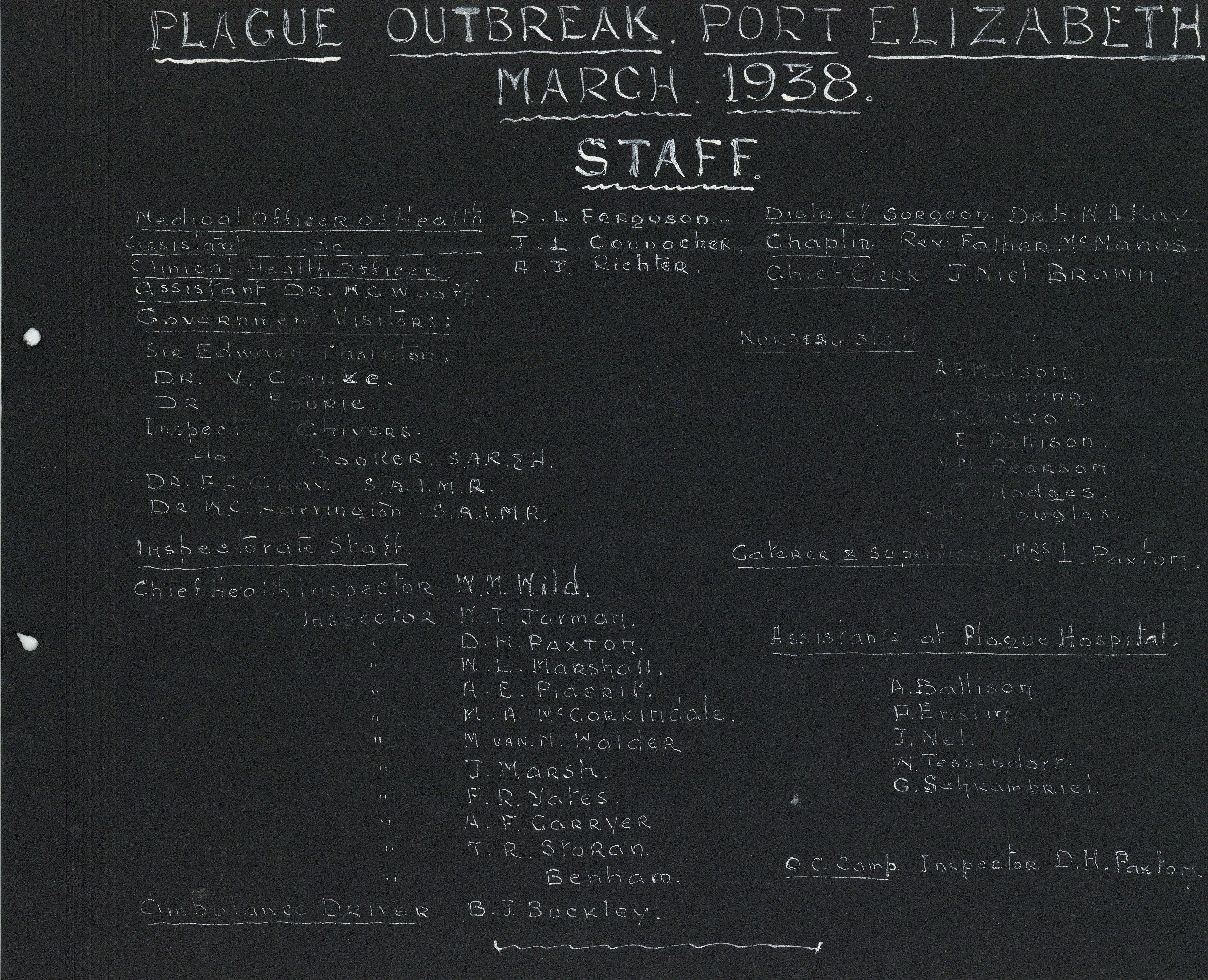 Plague outbreak, Port Elizabeth, March 1938. Staff names and their positions