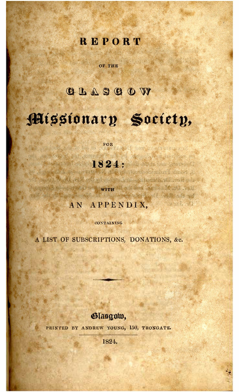 Report of the Glasgow Missionary Society for 1824 with an appendix containing a list of subscriptions, donations, &c.