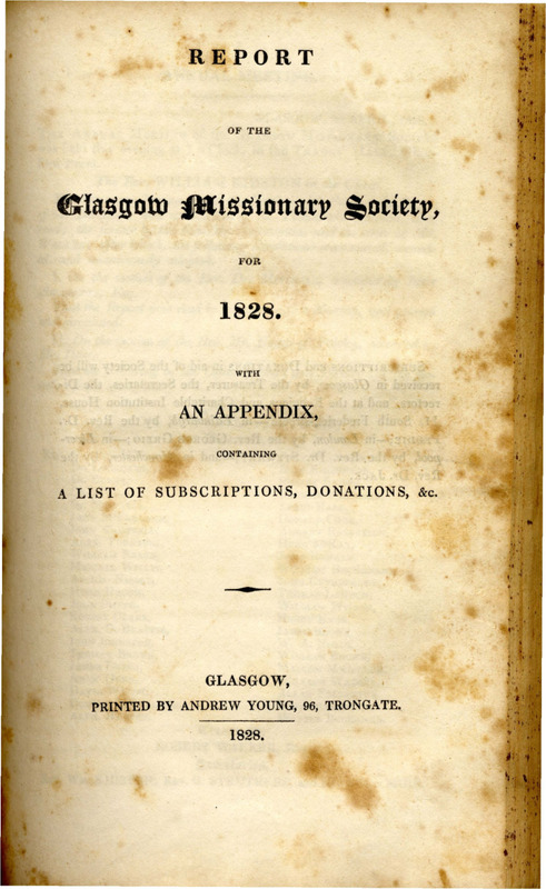 Glasgow Missionary Society, “Report of the Glasgow Missionary Society for 1828 with an appendix containing a list of subscriptions, donations, &c.”, Cory Library and Historical Archives, accessed 28 December 2025, https://digitalarchives.ru.ac.za/s/cory/item/14947