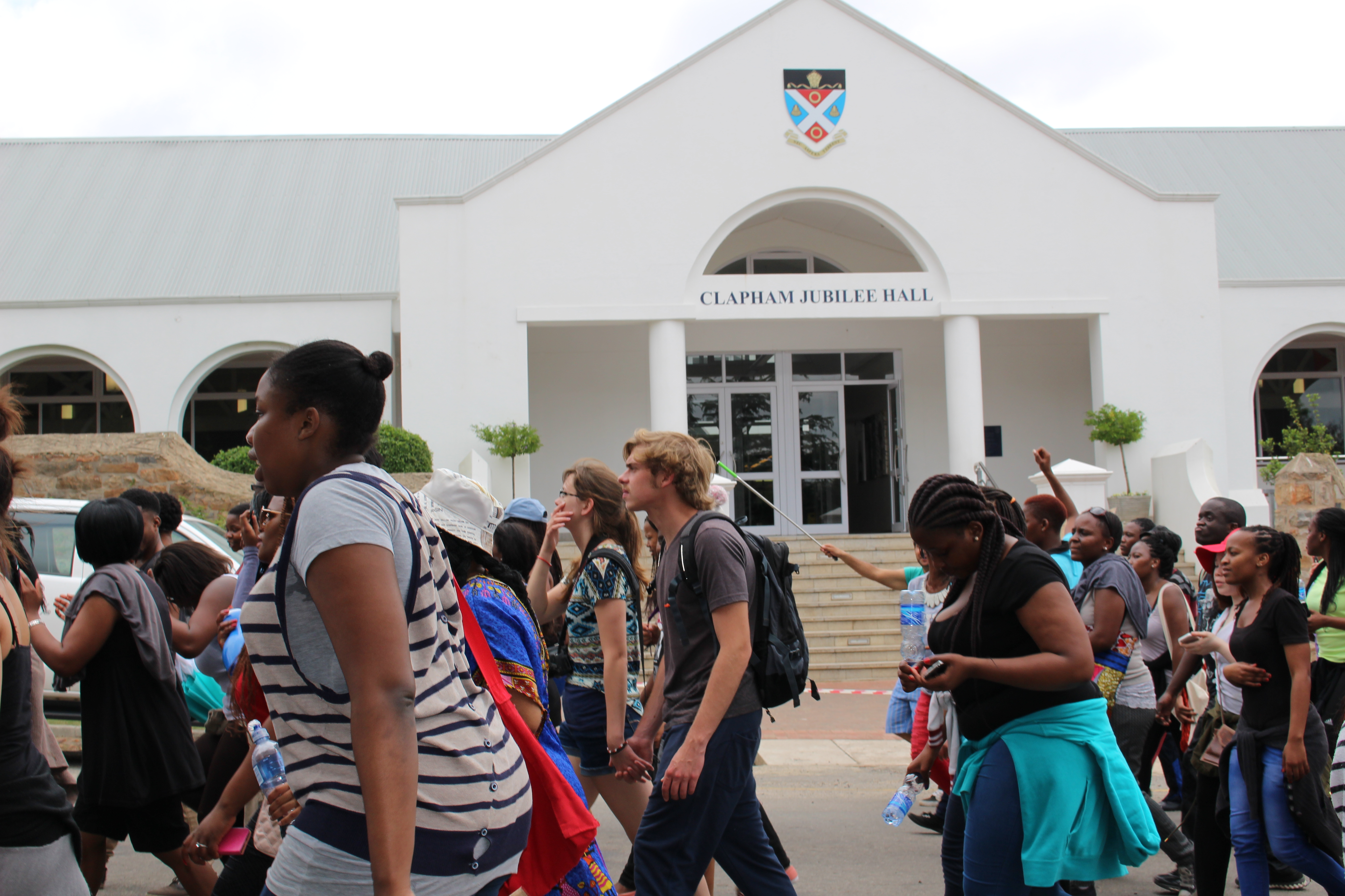 - On Wednesday, 21 October 2015, Rhodes University closed in solidarity with the higher education sector as students and staff embarked on nationwide protest action against the shortage of funding in the South African higher education sector. #FeesMustFall is a national student led protest movement that began in mid-October 2015 in response to proposed increases in fees at South African universities. These images depict the peaceful march and illustrate the extent of solidarity among staff, students and community members who joined in support of the protest.