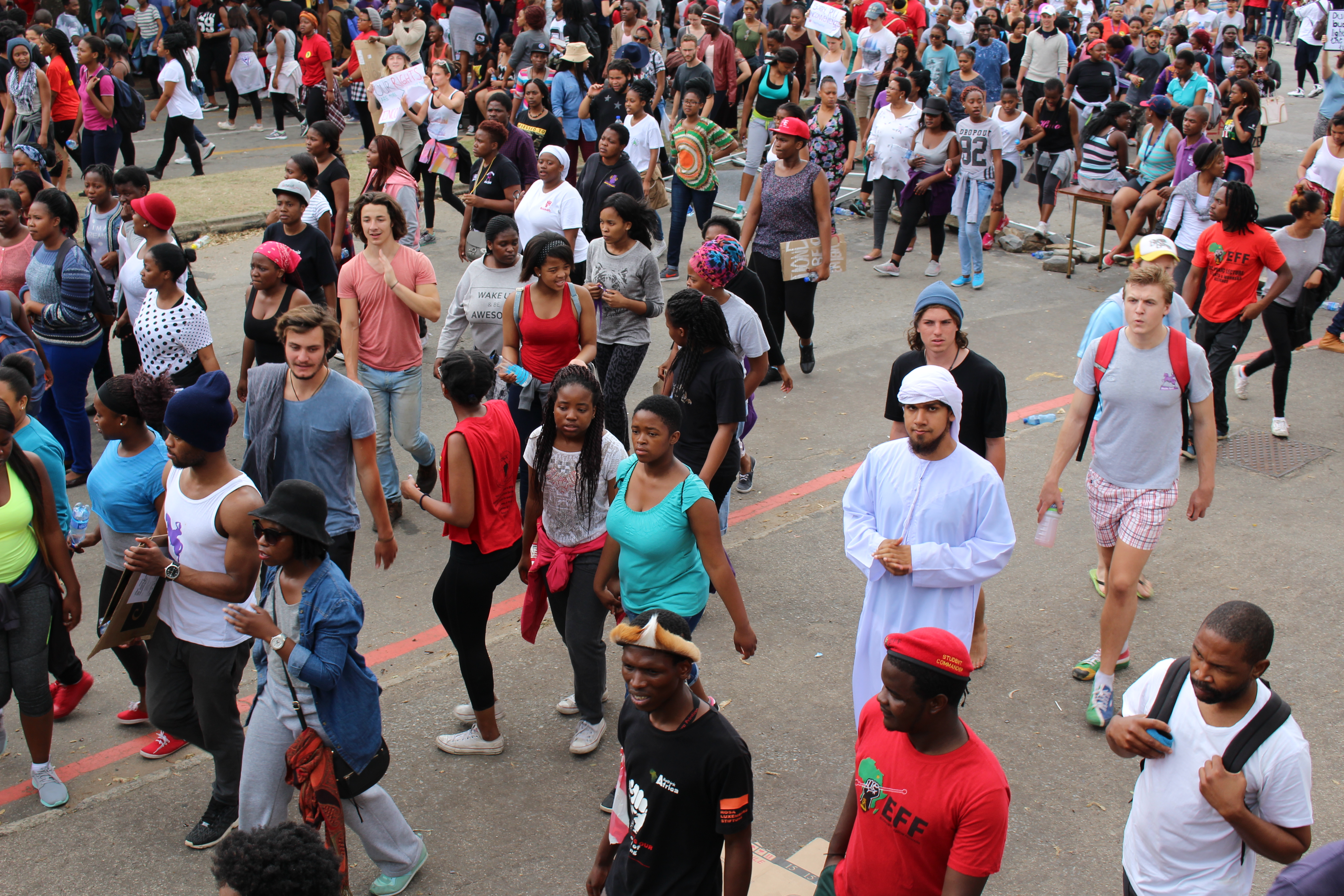- On Wednesday, 21 October 2015, Rhodes University closed in solidarity with the higher education sector as students and staff embarked on nationwide protest action against the shortage of funding in the South African higher education sector. #FeesMustFall is a national student led protest movement that began in mid-October 2015 in response to proposed increases in fees at South African universities. These images depict the peaceful march and illustrate the extent of solidarity among staff, students and community members who joined in support of the protest.