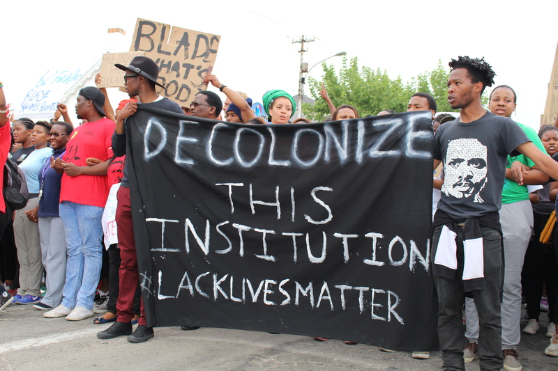 - On Wednesday, 21 October 2015, Rhodes University closed in solidarity with the higher education sector as students and staff embarked on nationwide protest action against the shortage of funding in the South African higher education sector. #FeesMustFall is a national student led protest movement that began in mid-October 2015 in response to proposed increases in fees at South African universities. These images depict the peaceful march and illustrate the extent of solidarity among staff, students and community members who joined in support of the protest.