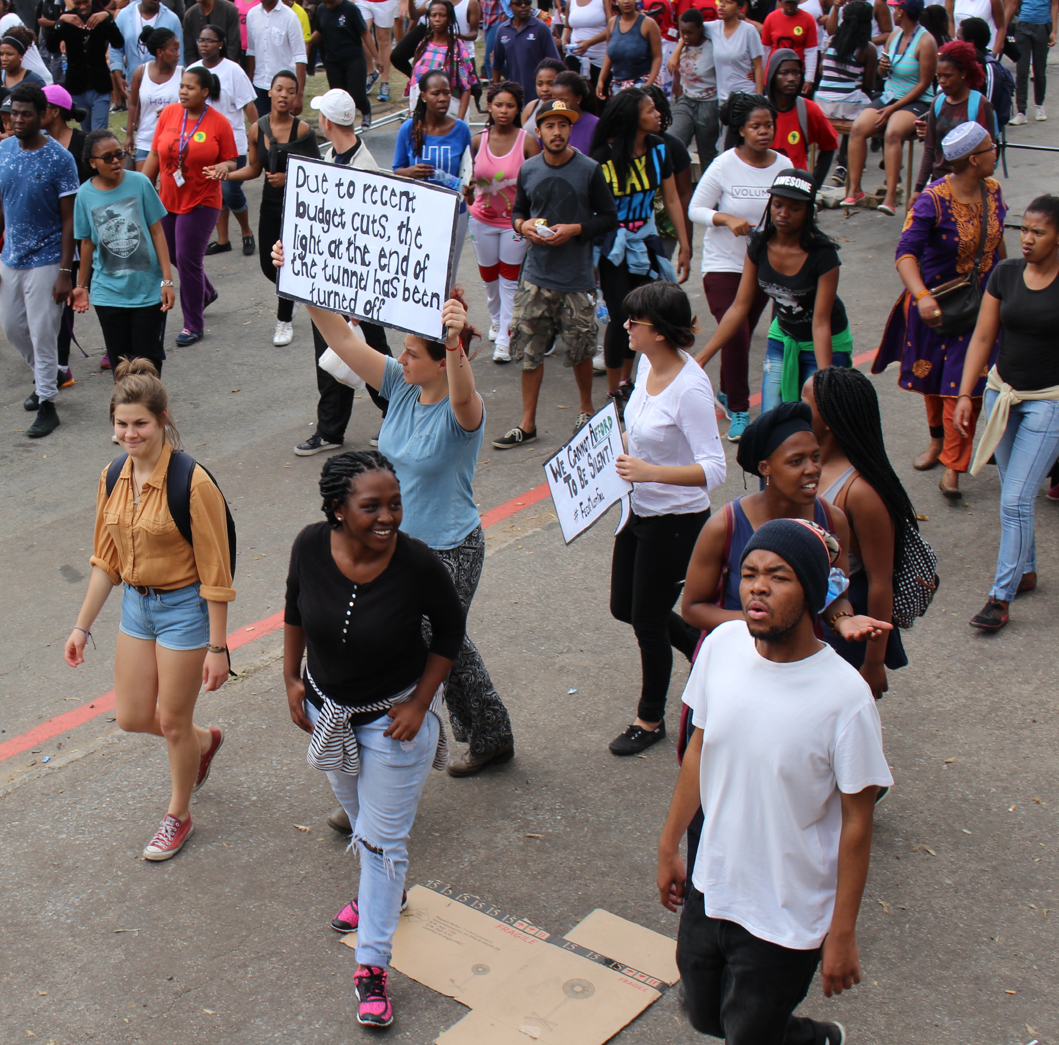 - On Wednesday, 21 October 2015, Rhodes University closed in solidarity with the higher education sector as students and staff embarked on nationwide protest action against the shortage of funding in the South African higher education sector. #FeesMustFall is a national student led protest movement that began in mid-October 2015 in response to proposed increases in fees at South African universities. These images depict the peaceful march and illustrate the extent of solidarity among staff, students and community members who joined in support of the protest.