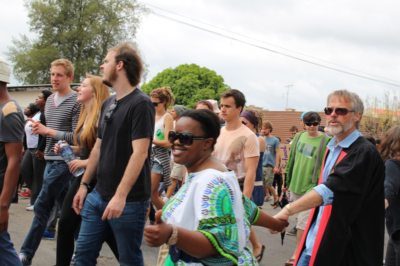- On Wednesday, 21 October 2015, Rhodes University closed in solidarity with the higher education sector as students and staff embarked on nationwide protest action against the shortage of funding in the South African higher education sector. #FeesMustFall is a national student led protest movement that began in mid-October 2015 in response to proposed increases in fees at South African universities. These images depict the peaceful march and illustrate the extent of solidarity among staff, students and community members who joined in support of the protest.
