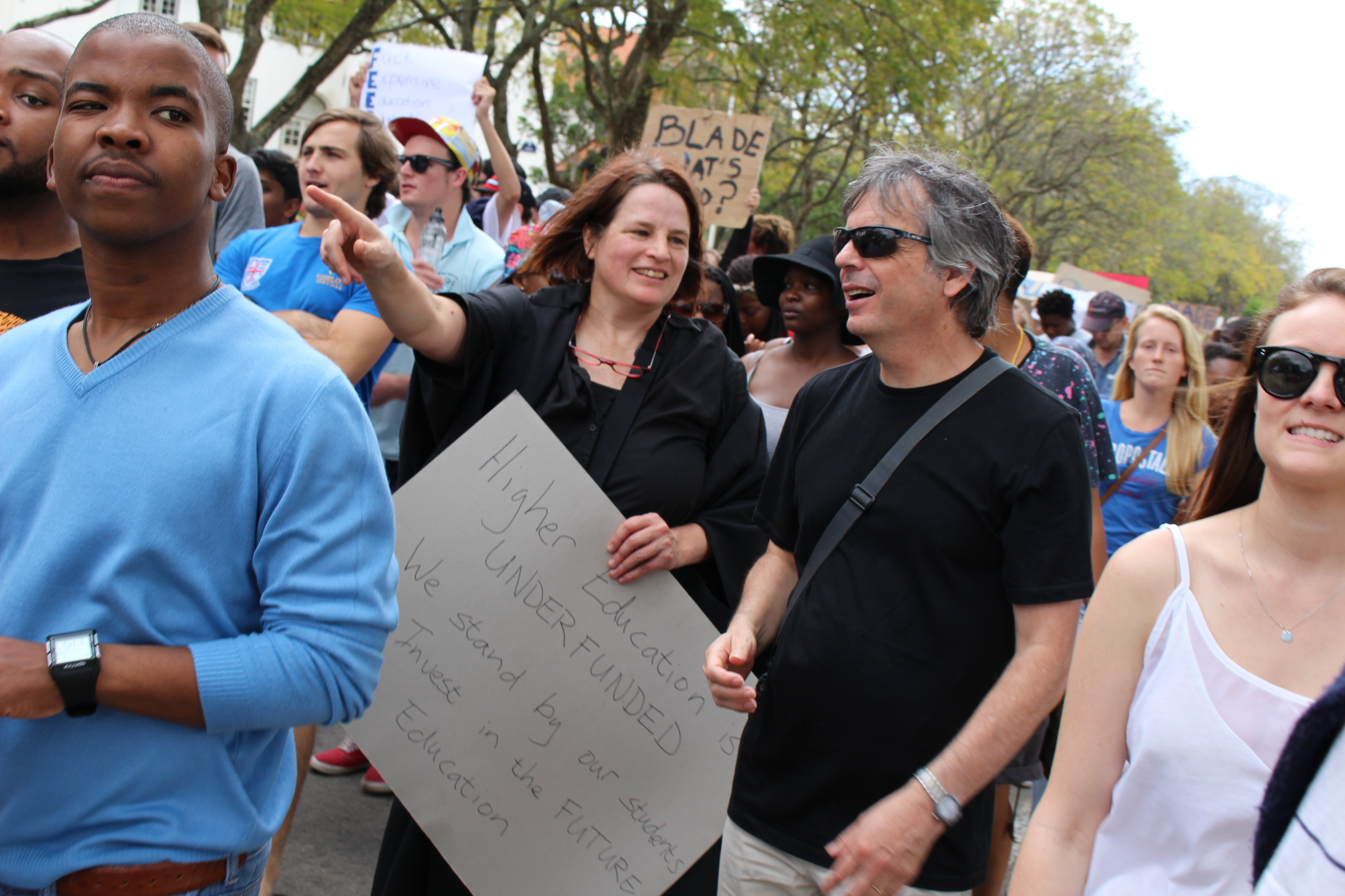 - On Wednesday, 21 October 2015, Rhodes University closed in solidarity with the higher education sector as students and staff embarked on nationwide protest action against the shortage of funding in the South African higher education sector. #FeesMustFall is a national student led protest movement that began in mid-October 2015 in response to proposed increases in fees at South African universities. These images depict the peaceful march and illustrate the extent of solidarity among staff, students and community members who joined in support of the protest.