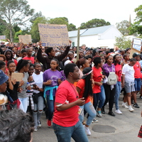 - On Wednesday, 21 October 2015, Rhodes University closed in solidarity with the higher education sector as students and staff embarked on nationwide protest action against the shortage of funding in the South African higher education sector. #FeesMustFall is a national student led protest movement that began in mid-October 2015 in response to proposed increases in fees at South African universities. These images depict the peaceful march and illustrate the extent of solidarity among staff, students and community members who joined in support of the protest.