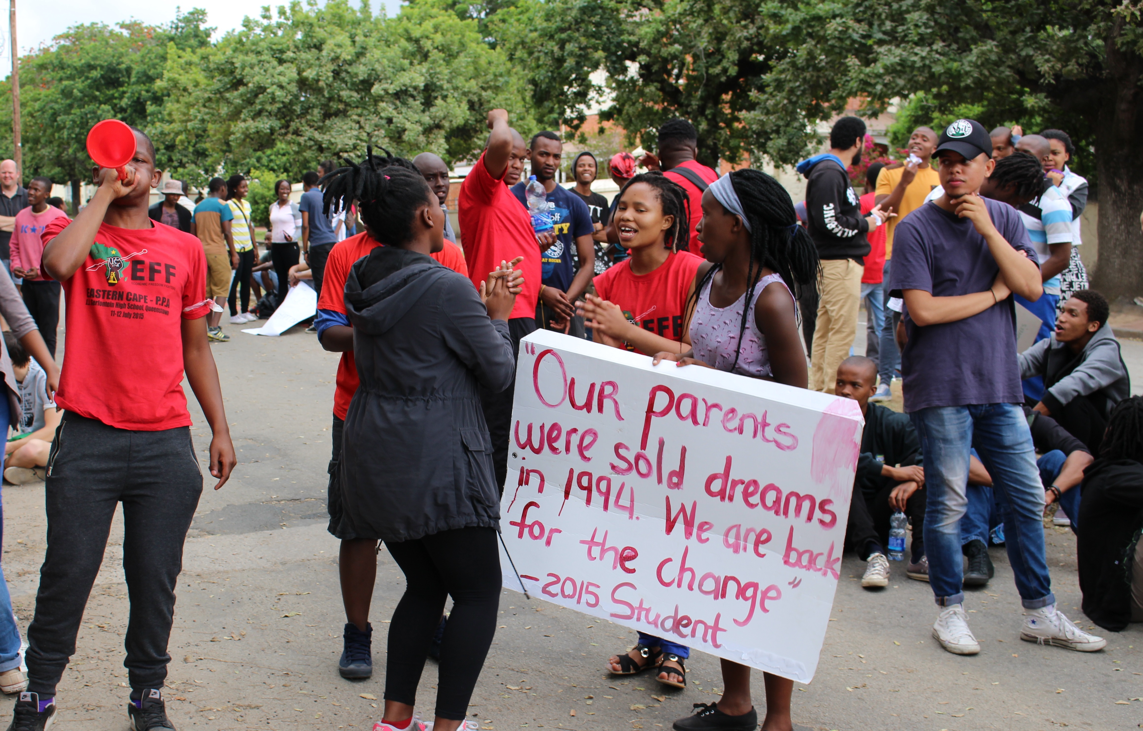 - On Wednesday, 21 October 2015, Rhodes University closed in solidarity with the higher education sector as students and staff embarked on nationwide protest action against the shortage of funding in the South African higher education sector. #FeesMustFall is a national student led protest movement that began in mid-October 2015 in response to proposed increases in fees at South African universities. These images depict the peaceful march and illustrate the extent of solidarity among staff, students and community members who joined in support of the protest.