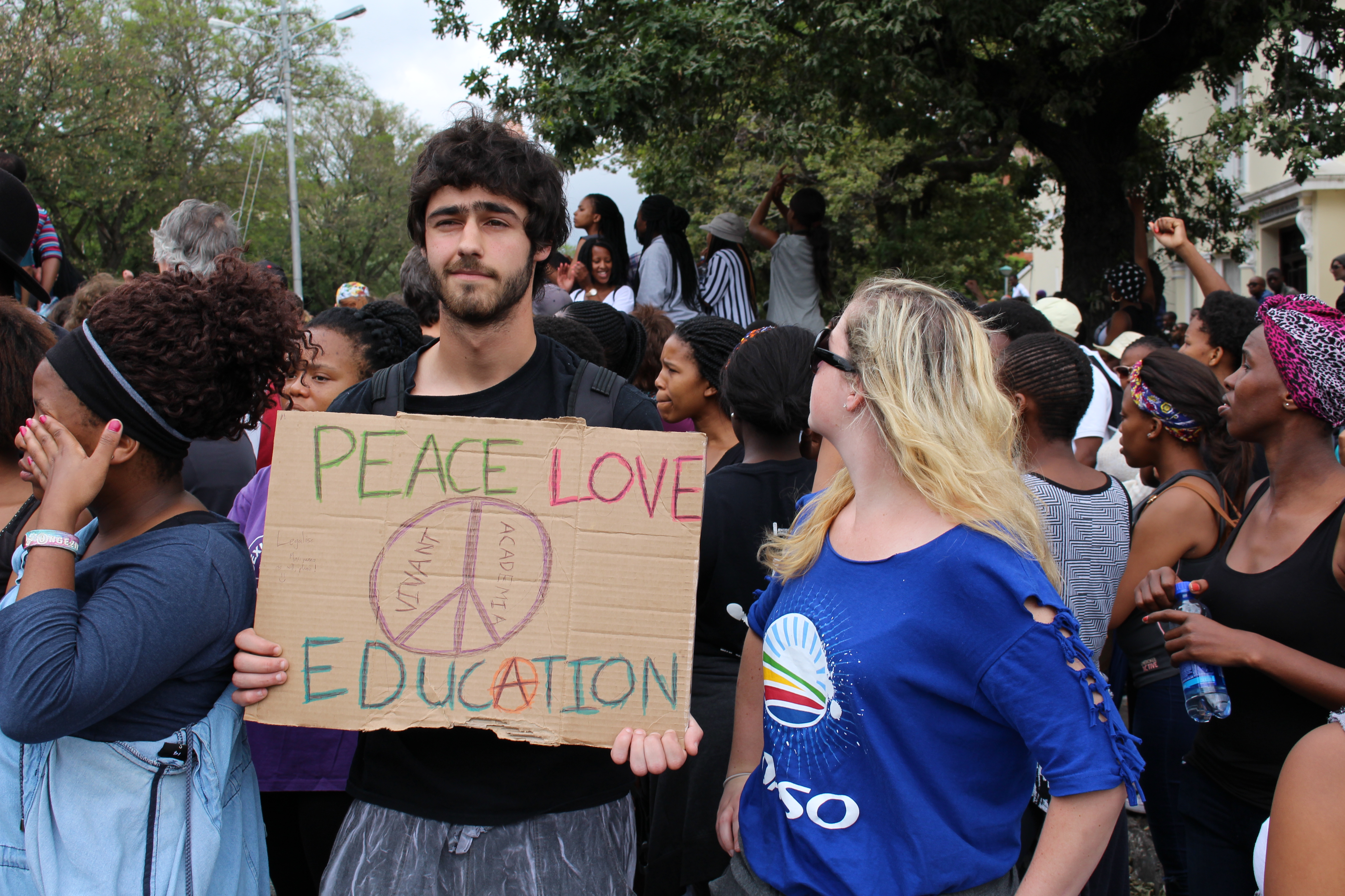- On Wednesday, 21 October 2015, Rhodes University closed in solidarity with the higher education sector as students and staff embarked on nationwide protest action against the shortage of funding in the South African higher education sector. #FeesMustFall is a national student led protest movement that began in mid-October 2015 in response to proposed increases in fees at South African universities. These images depict the peaceful march and illustrate the extent of solidarity among staff, students and community members who joined in support of the protest.