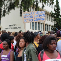 - On Wednesday, 21 October 2015, Rhodes University closed in solidarity with the higher education sector as students and staff embarked on nationwide protest action against the shortage of funding in the South African higher education sector. #FeesMustFall is a national student led protest movement that began in mid-October 2015 in response to proposed increases in fees at South African universities. These images depict the peaceful march and illustrate the extent of solidarity among staff, students and community members who joined in support of the protest.