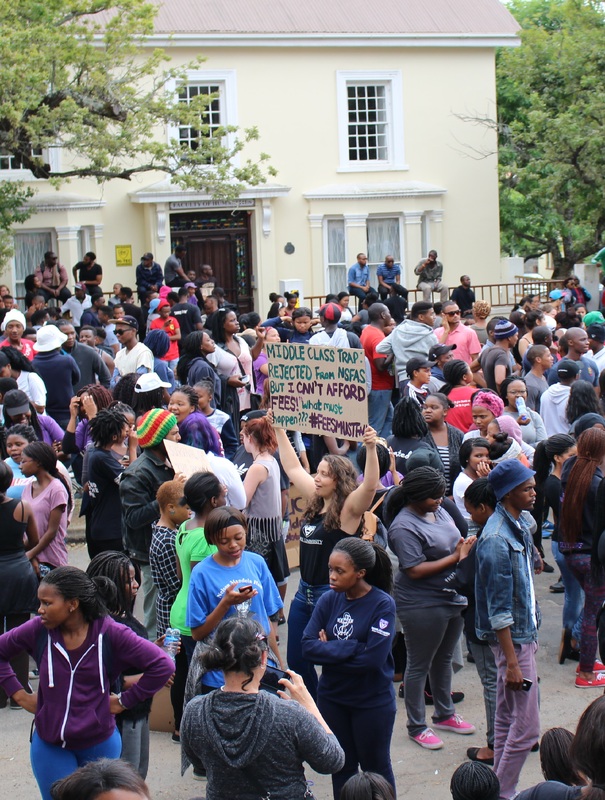 - On Wednesday, 21 October 2015, Rhodes University closed in solidarity with the higher education sector as students and staff embarked on nationwide protest action against the shortage of funding in the South African higher education sector. #FeesMustFall is a national student led protest movement that began in mid-October 2015 in response to proposed increases in fees at South African universities. These images depict the peaceful march and illustrate the extent of solidarity among staff, students and community members who joined in support of the protest.