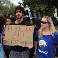 - On Wednesday, 21 October 2015, Rhodes University closed in solidarity with the higher education sector as students and staff embarked on nationwide protest action against the shortage of funding in the South African higher education sector. #FeesMustFall is a national student led protest movement that began in mid-October 2015 in response to proposed increases in fees at South African universities. These images depict the peaceful march and illustrate the extent of solidarity among staff, students and community members who joined in support of the protest.