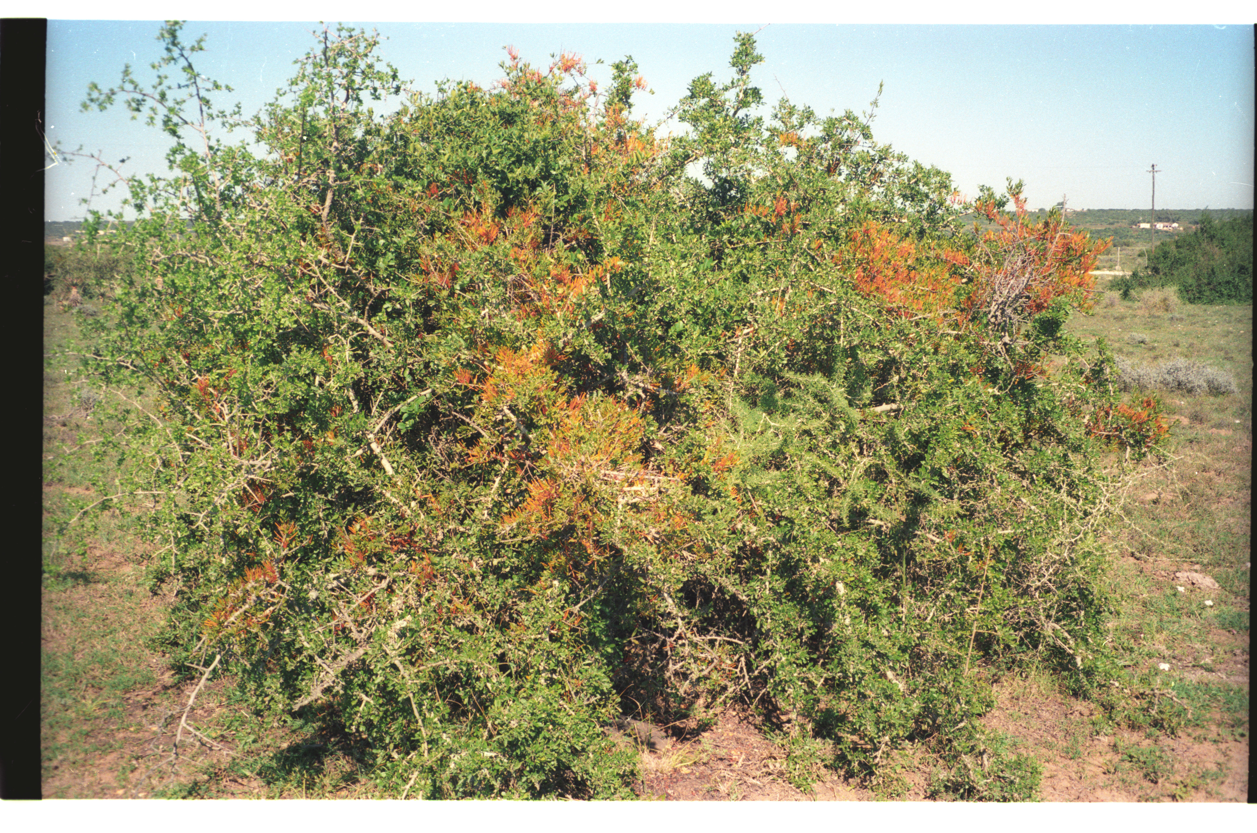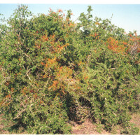 - Moquinella rubra in full flower over bush. Many other such bushes were equally infected.