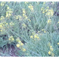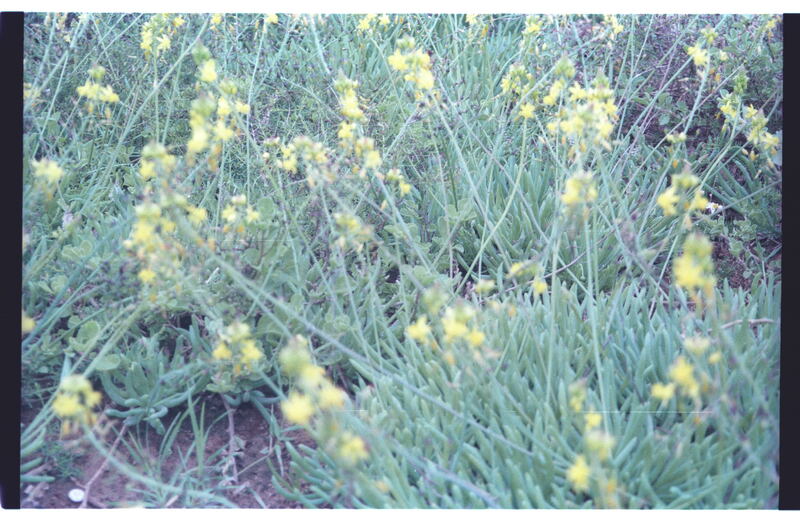 - Close-up of Bulbine frutescens at edge of vast spread of same.