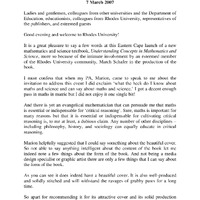 - Address at launch of maths and science textbook: Understanding concepts in mathematics and science.