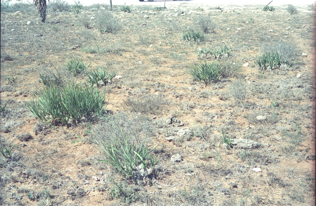 - 14 Plants of Albuca tortuosa part of many covering the area in like numbers. When flowering in a good season make a fine sight. Veld very dry when photo taken.