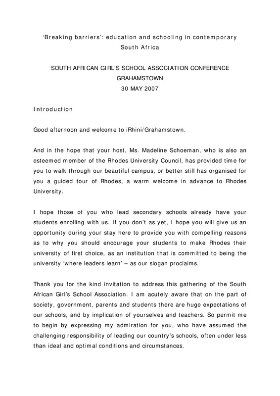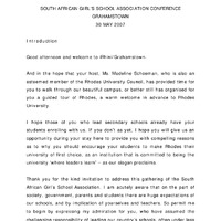 - South African Girl's School Association Conference, May 2007, Grahamstown