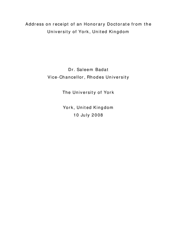 Badat, Saleem, “Address on receipt of an Honorary Doctorate from the University of York, United Kingdom”, Cory Library and Historical Archives, accessed 31 December 2025, https://digitalarchives.ru.ac.za/s/cory/item/15957