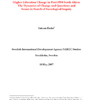 Badat, Saleem, “Higher Education change in post-1994 South Africa : the dynamics of change and questions and issues in search of sociological inquiry”, Cory Library and Historical Archives, accessed 31 December 2025, https://digitalarchives.ru.ac.za/s/cory/item/15977