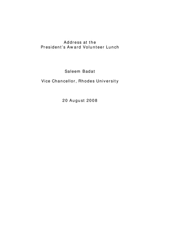 Badat, Saleem, “Address at the President's Award Volunteer Lunch”, Cory Library and Historical Archives, accessed 31 December 2025, https://digitalarchives.ru.ac.za/s/cory/item/15987