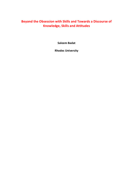 Beyond the obsession with skills and towards a discourse of knowledge, skills and attitudes